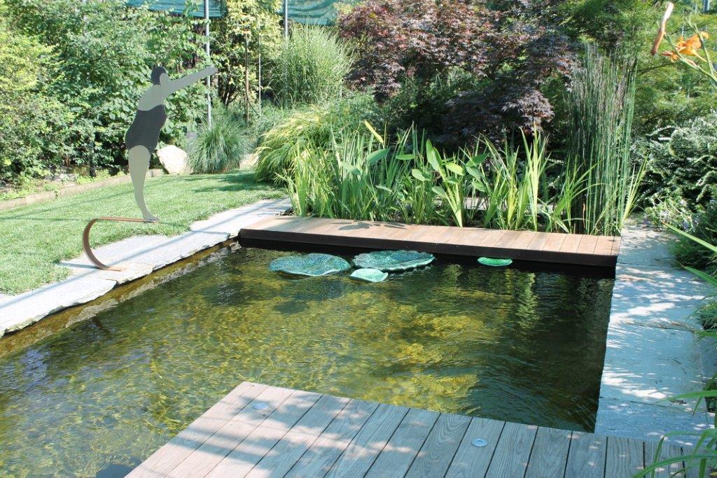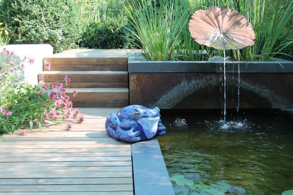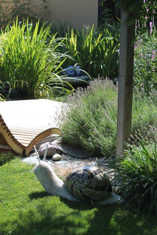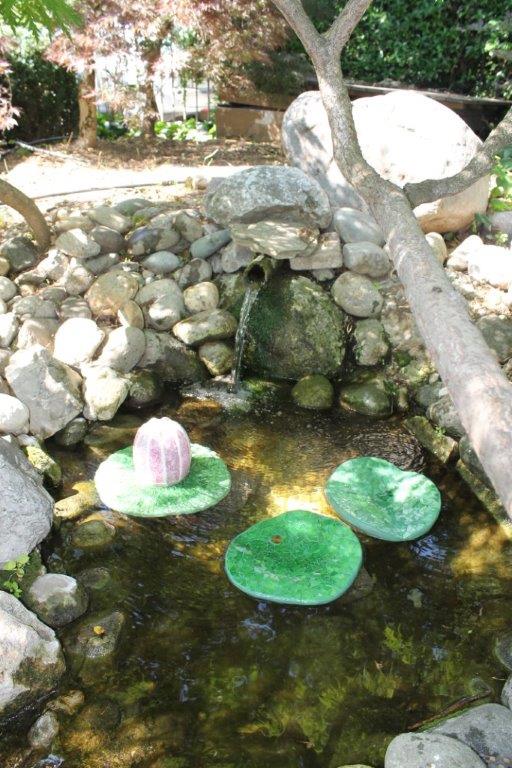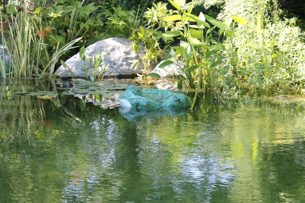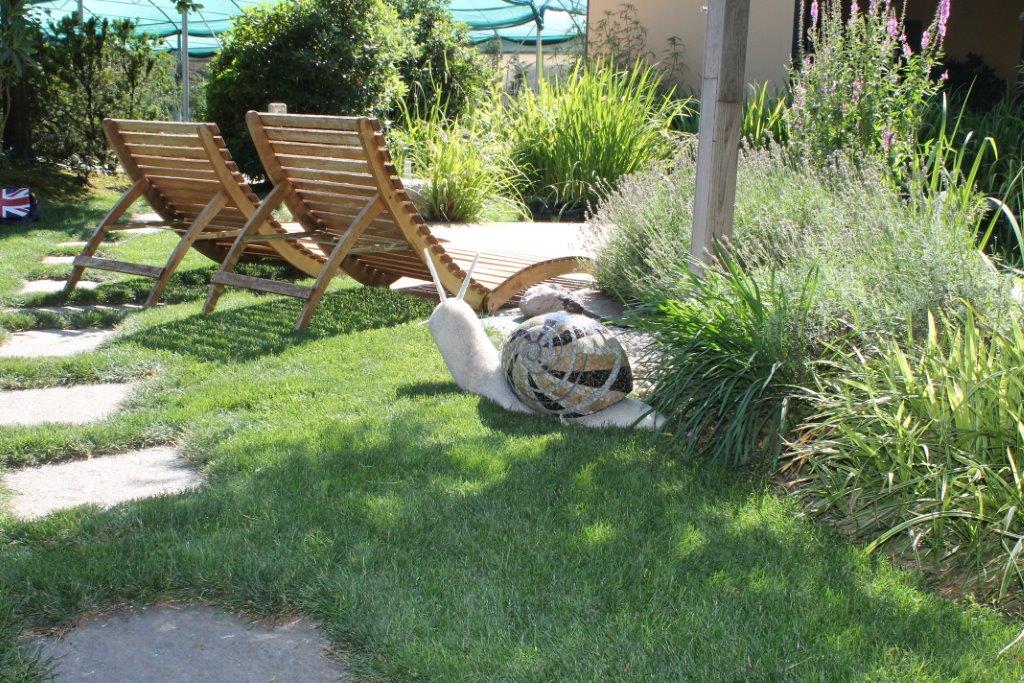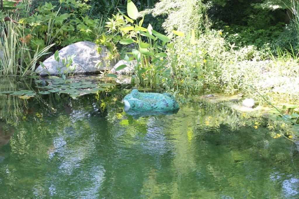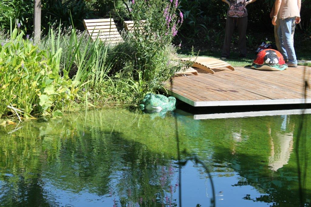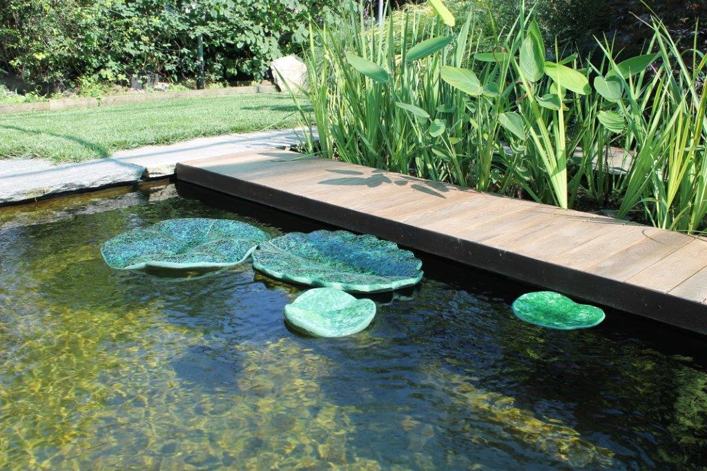 Rane, lumache, coccinelle, fiori e foglie. Persino un pesce. Sculture in Gas Beton resistenti all’acqua e a qualsiasi atmosfera ricoperte di prezioso mosaico con tessere di vetro, per un colore e una lucentezza che durano nel tempo.