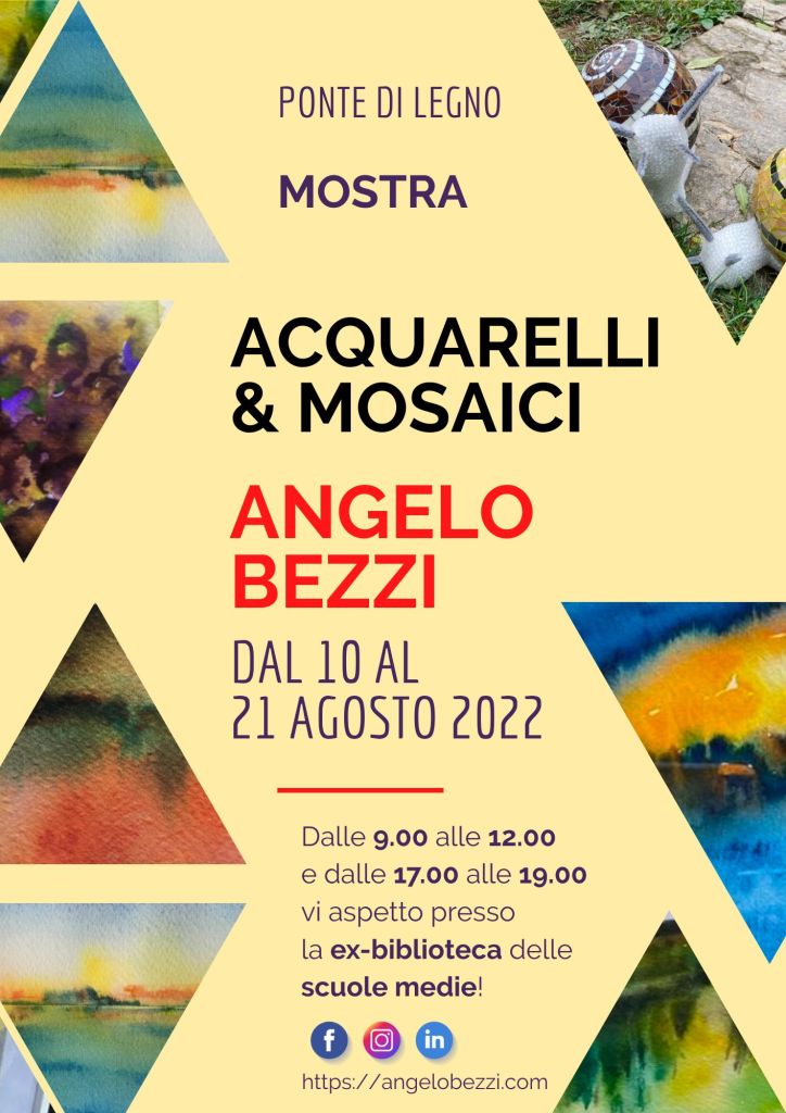 Dal 10 al 21 agosto 2022 mi troverete con i miei acquarelli e mosaici dalle ore 9.00 alle ore 12.00 e dalle 17 alle 19.00 presso la ex-biblioteca delle Scuole Medie a Ponte di Legno (BS).